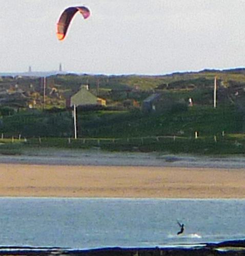 The flat expanse of the strand is great for FLYING KITES, too! For example, see the photo on the right, of this young French visitor on Omey Strand