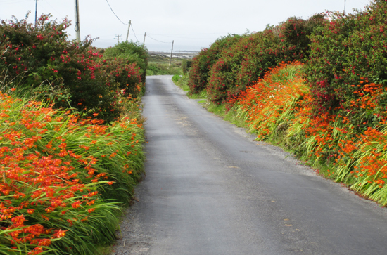 As the Summer draws on, the banks along the roads of the Peninsula just grow more and more lush and colourful, like the narrow road here leading to Rossadilisk, orange Montbretia and red and purple Fuchsia forming the main backdrop to others, such as Purple Loosestrife, Meadowsweet....