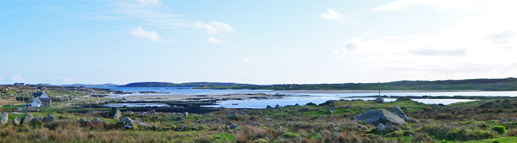 This is the view from Sweeney's Lounge overlooking Omey Strand and Island.