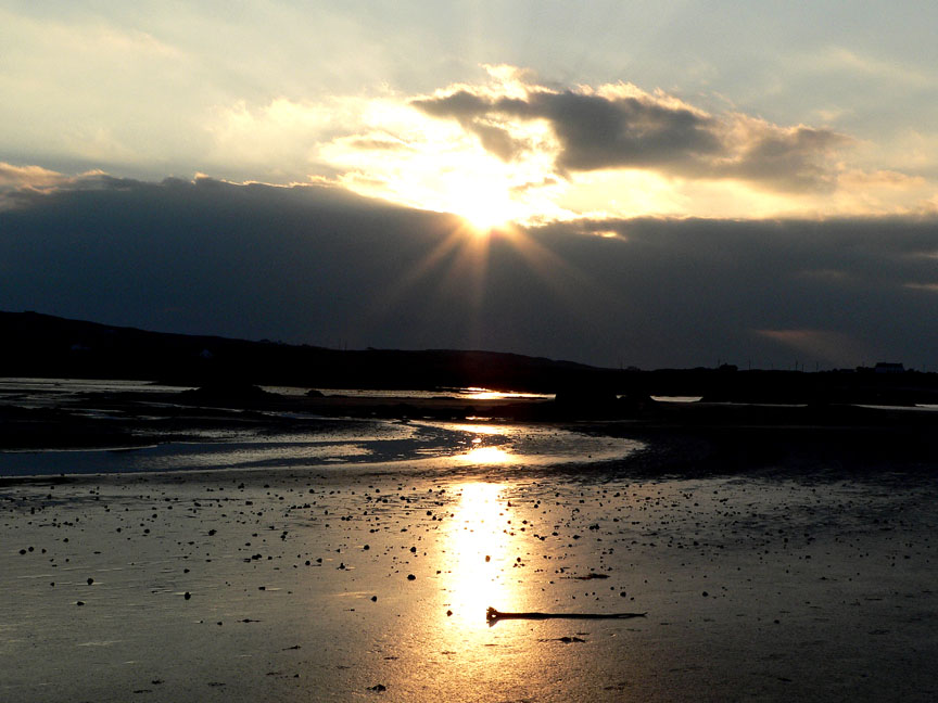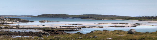 Tra Mhor (the Big Beach) is also on the sea side of Aughrus Lake. Near the small road leading to the area known locally as Gannoughs, and to Aughrus Point itself, a rough track between fences leads you to the beach.