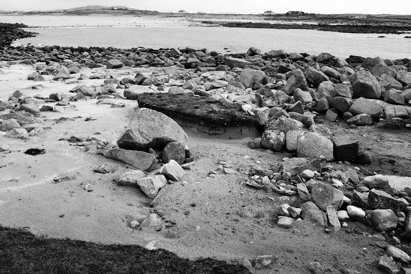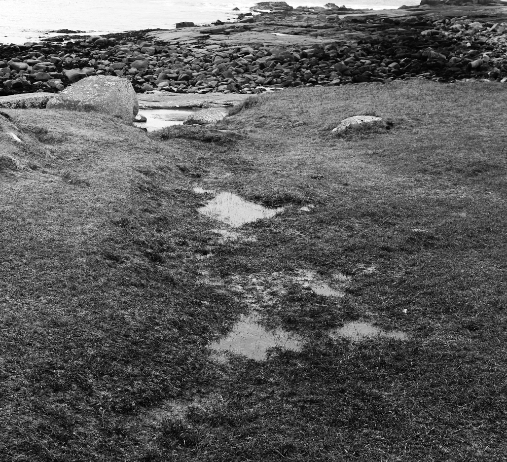 The photo on the right shows an isolated small island of grassland on what's now a sandy beach. This is between the west beach and St Feichin's Well.