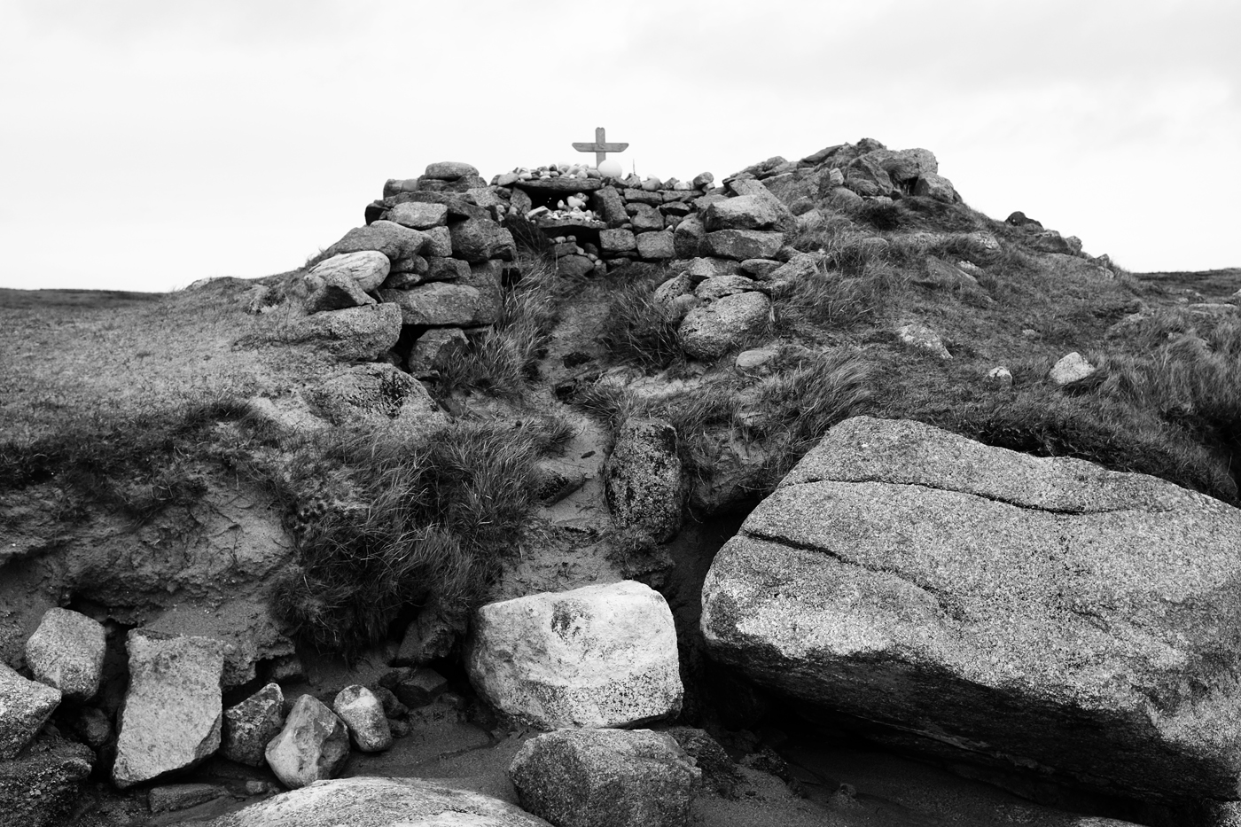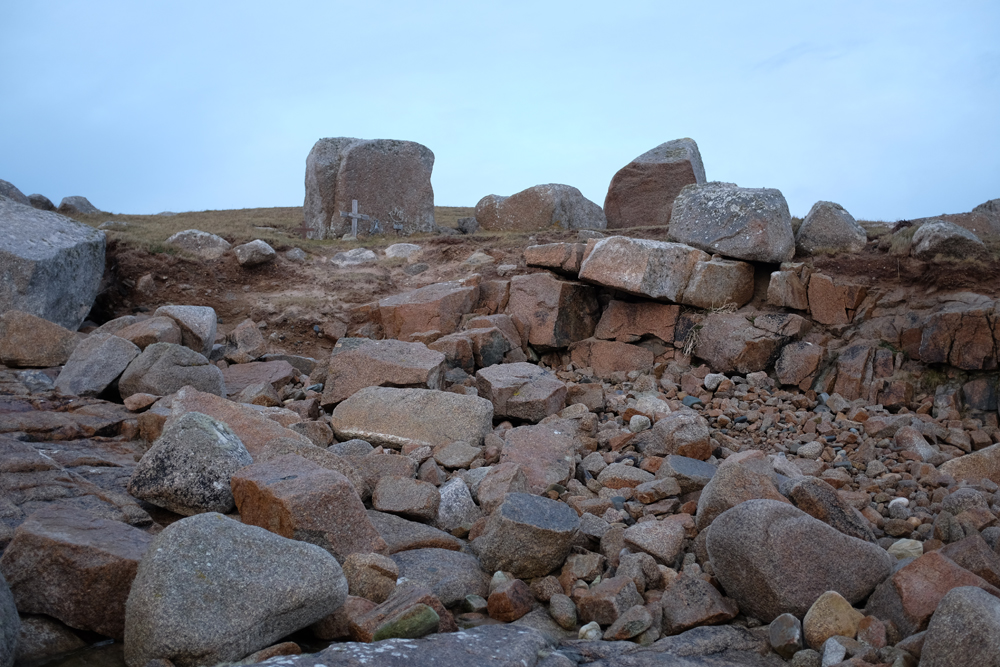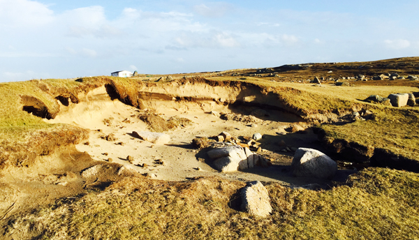 The erosion around our coastline is enormous these years, especially on the sandy margins. The erosion to the right, on Omey (all the photos here are from Omey Island), is on the west side, where there are a number of memorial crosses. These used to be near the coast but with a good deal of grassland between them and the sea. Now they're right on the edge. You can see the amount of land that has gone.