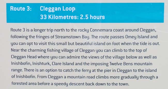 Description of Cycle Loop "3" - "The Cleggan Loop" (from sign at Cleggan Harbour)