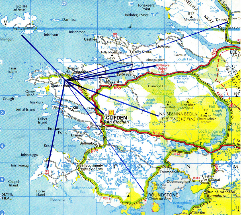 As you can see from the map above, the Aughrus Peninsula is within very easy reach of so many attractions - apart from those on the Peninsula itself, of course! Working clockwise around the lines drawn on the map, we show just how close you are to...